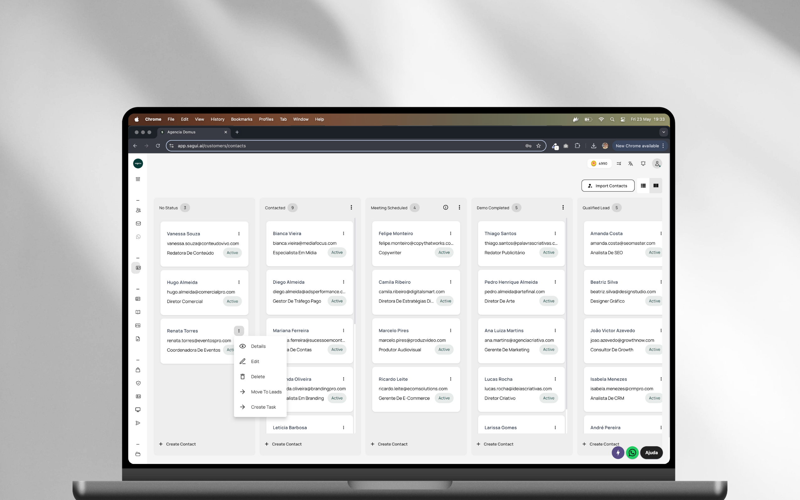 Tenha todos os seus contatos organizados em um só lugar. Acompanhe leads, tarefas, reuniões e próximos passos de forma simples e clara.