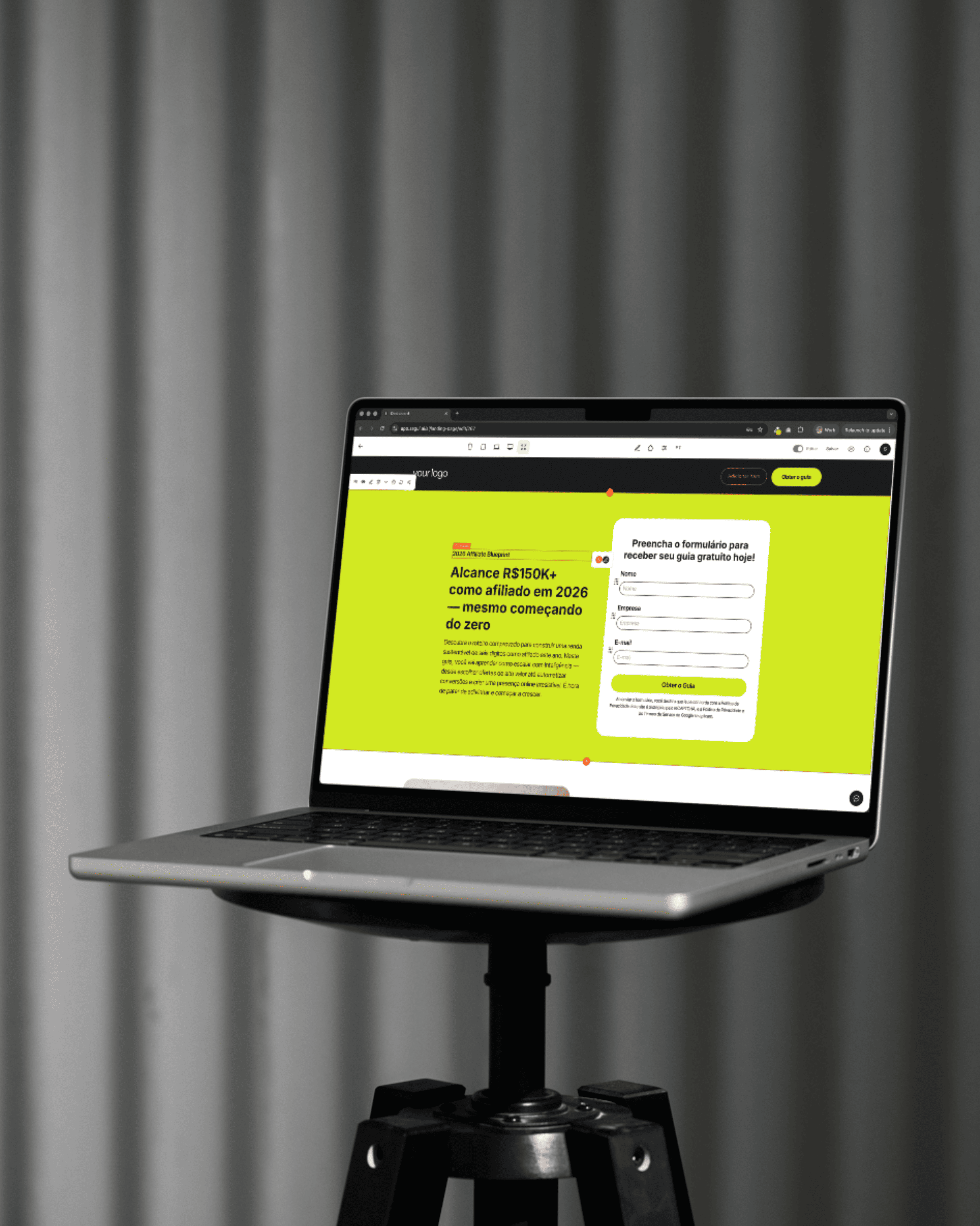 Crie, personalize e publique páginas de conversão em minutos. Use IA, escolha um modelo pronto ou comece do zero.